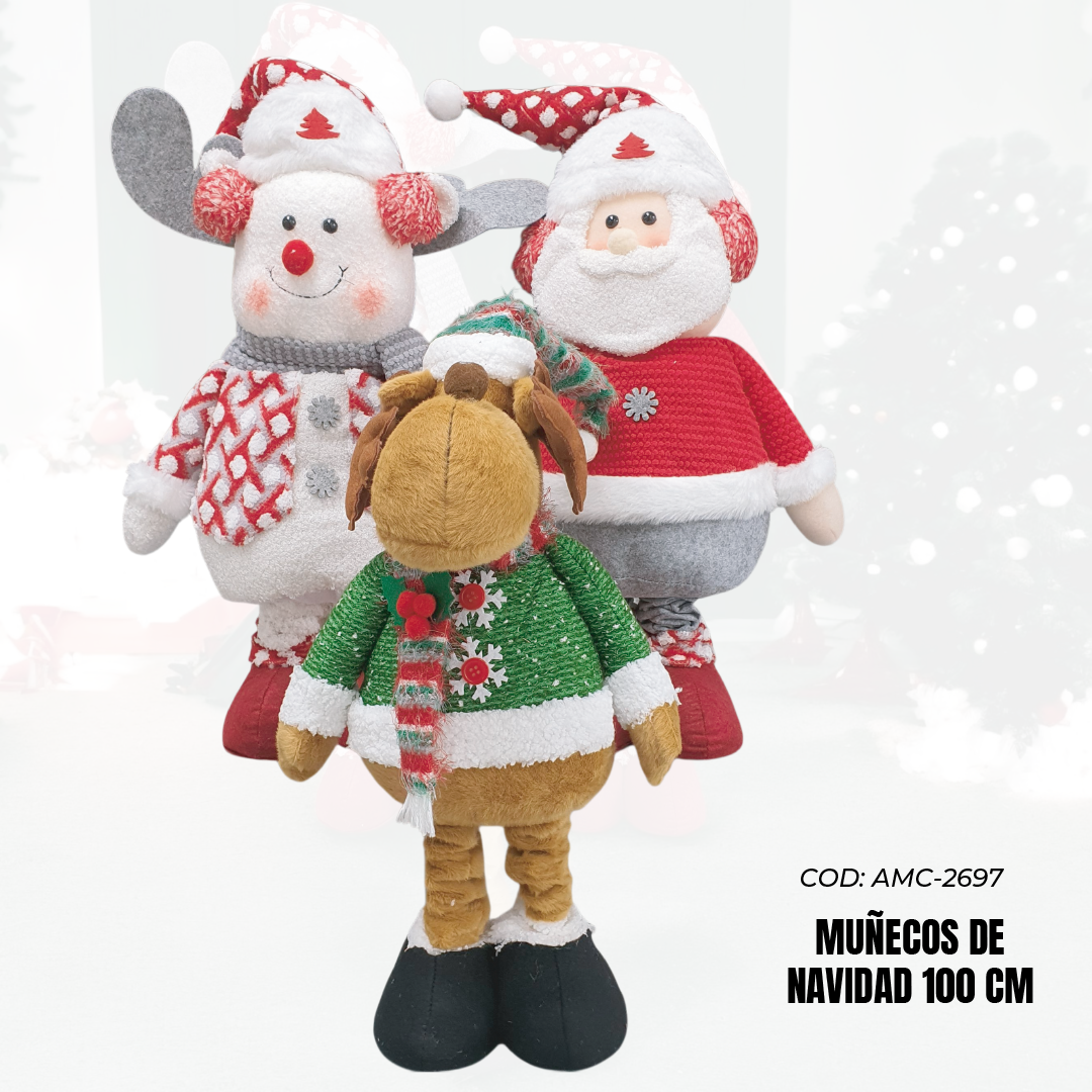 Llena tus espacios de magia y encanto con nuestros Muñecos de Navidad de 100 cm, el elemento decorativo perfecto para destacar en grande esta temporada. Su tamaño imponente y sus diseños cuidadosamente elaborados los convierten en piezas únicas que elevan cualquier ambiente navideño.